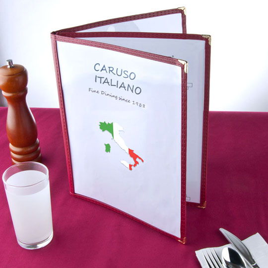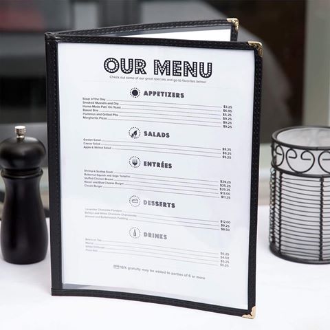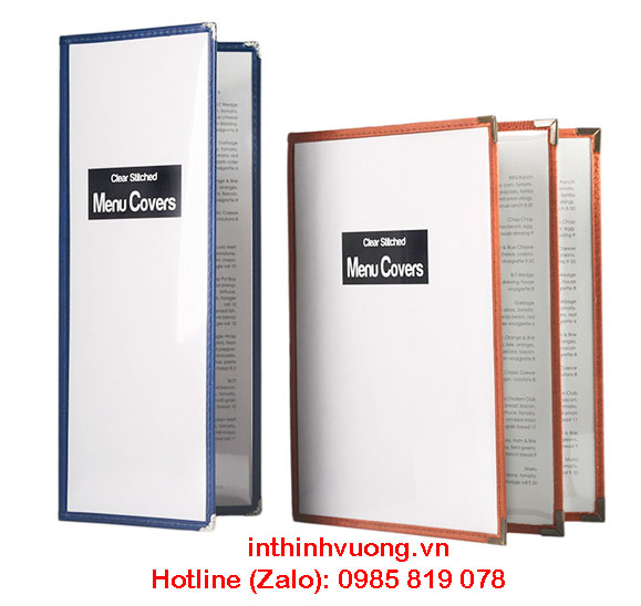 Vỏ menu được làm bằng mika mỏng, viền ngoài bằng da. Sản phẩm bền đẹp, có khả năng chống thấm nước. Dễ dàng thay thế nội dung khi cần thiết, tiện dụng cho nhà hàng.